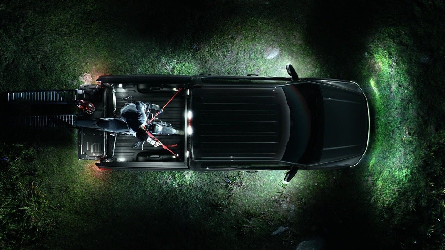 Want to keep working or playing into the night? Zone Lighting illuminates 360 degrees around your truck. Choose them all or select a few. Use the integrated touchscreen or FordPass® App to control each zone remotely.