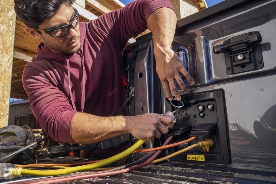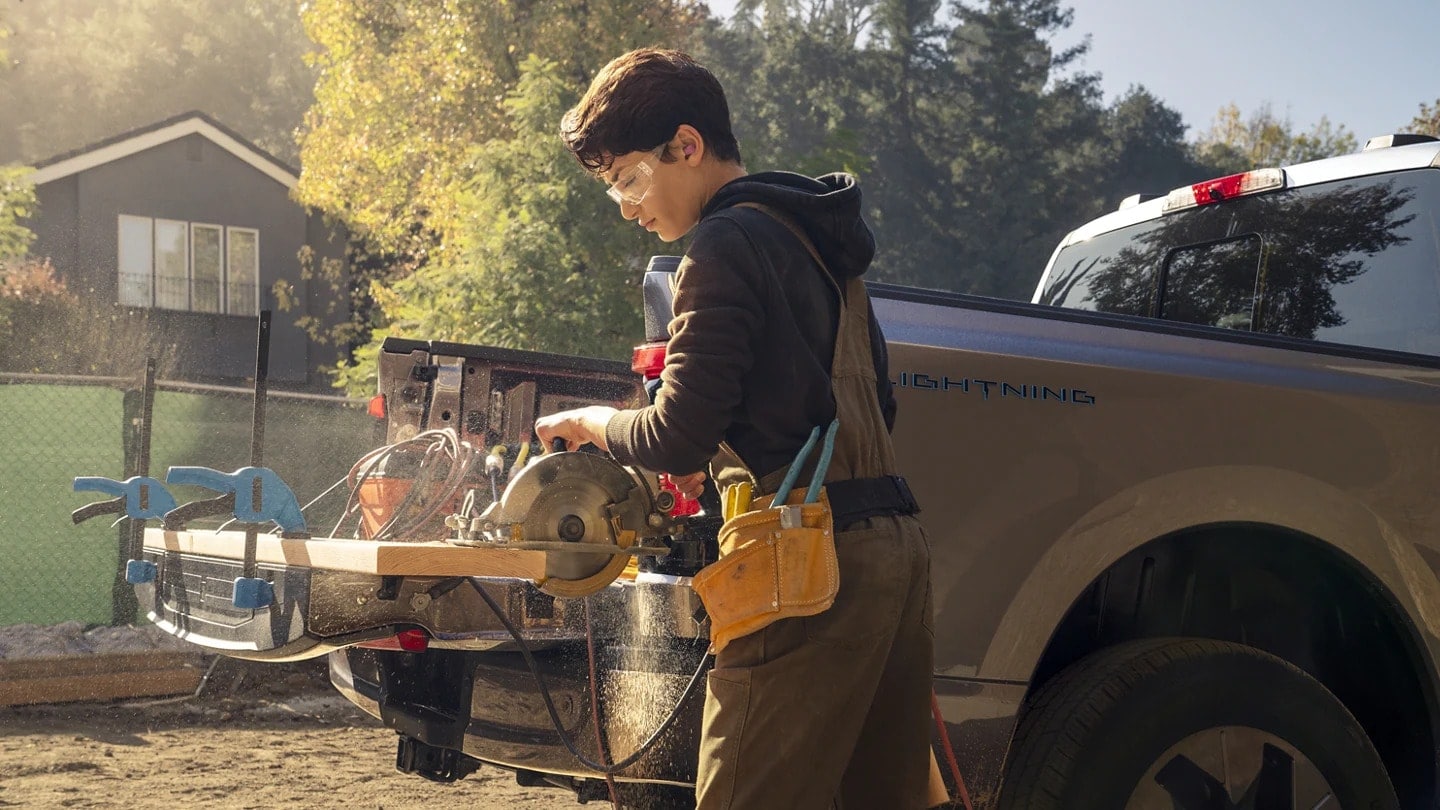 Be the talk of the tailgate. Pack along some conveniences camping. Plug-in a few power tools. With this much power your F-150® Lightning™ is up to the task.